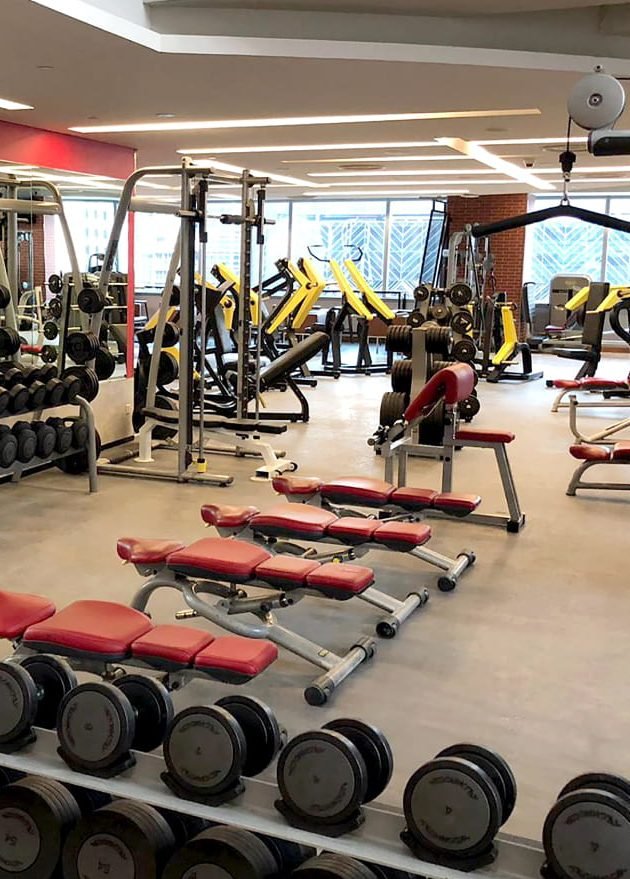 What amenities does First Fitness Gym offer on the 2nd floor?